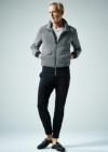 裾、袖口のリブ使いがスポーティーな装いを増しています。