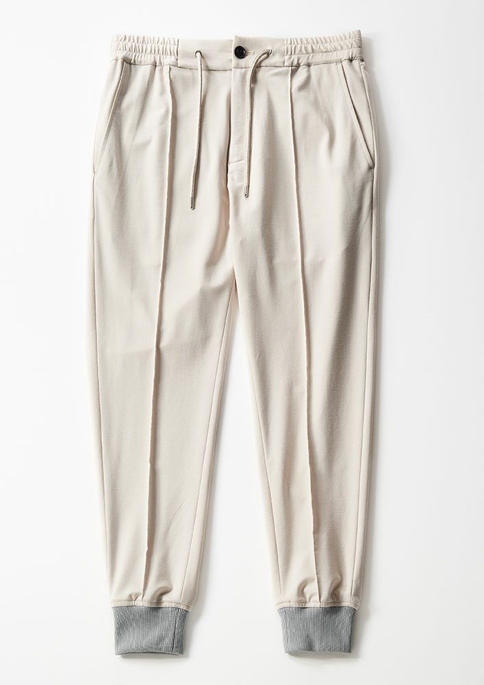 ウエスト紐付きのイージーリブパンツです。