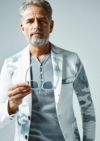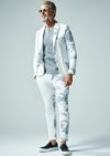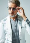 今季はラペル衿を若干細くしています。釦はAKMオリジナルの六穴水牛釦を採用しています。