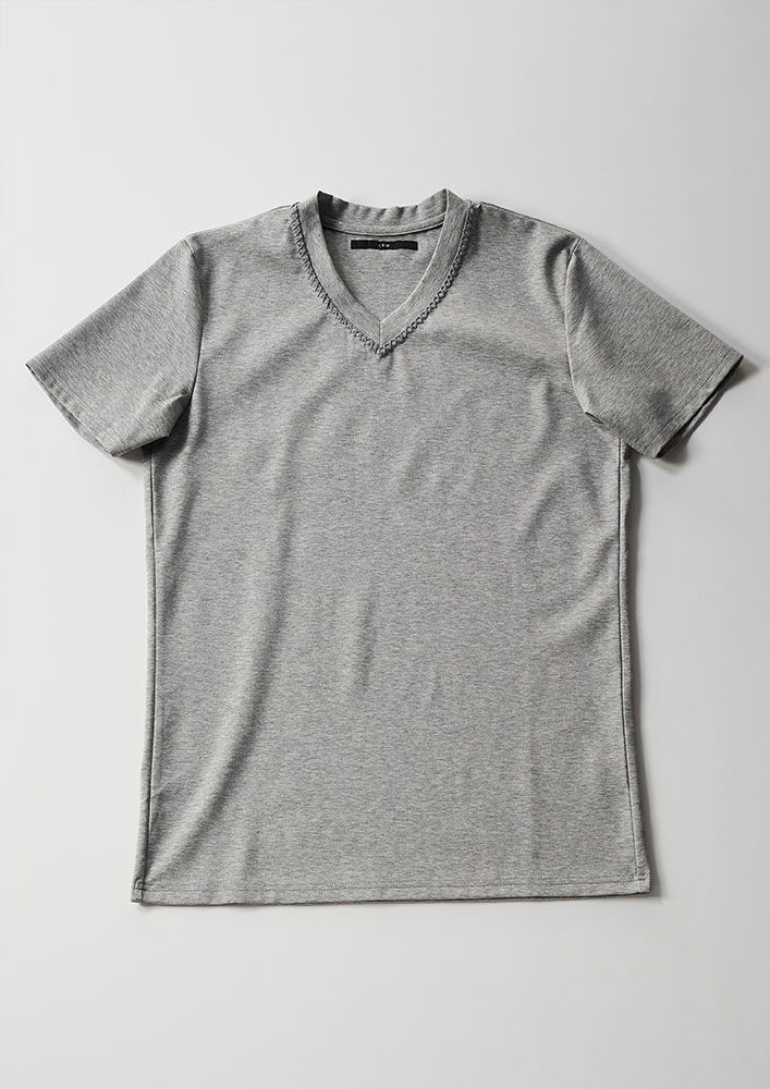 【 T230 / ROYAL COOL PONTI S/S HAND STITCH V-NECK -GRAY- 】