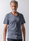 AKM定番のVネックとクルーネックの半袖Tシャツです。シンプルでベーシックなアイテムだからこそ、毎シーズン、身巾や衿の深さ、形状など改良を重ねています。今季は後衿下にAKMロゴをプリントしています。