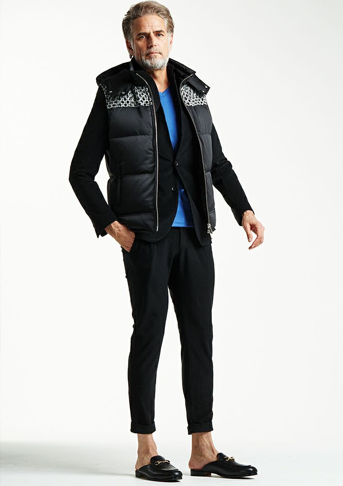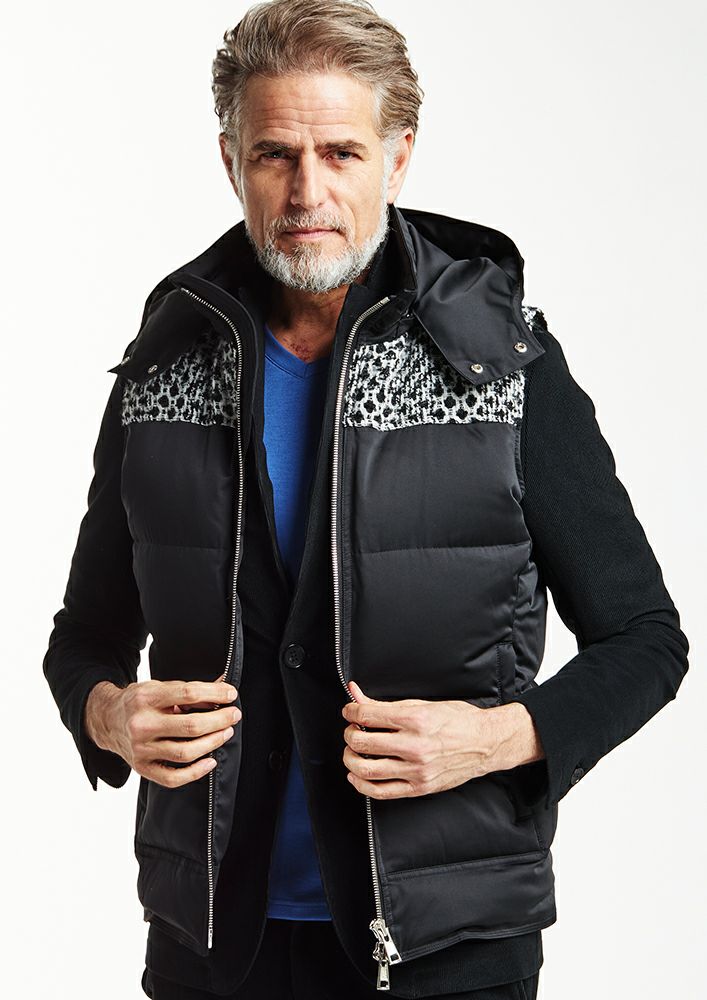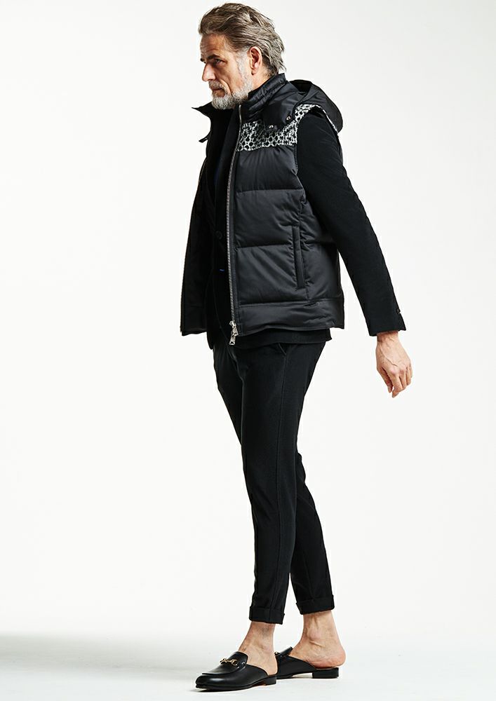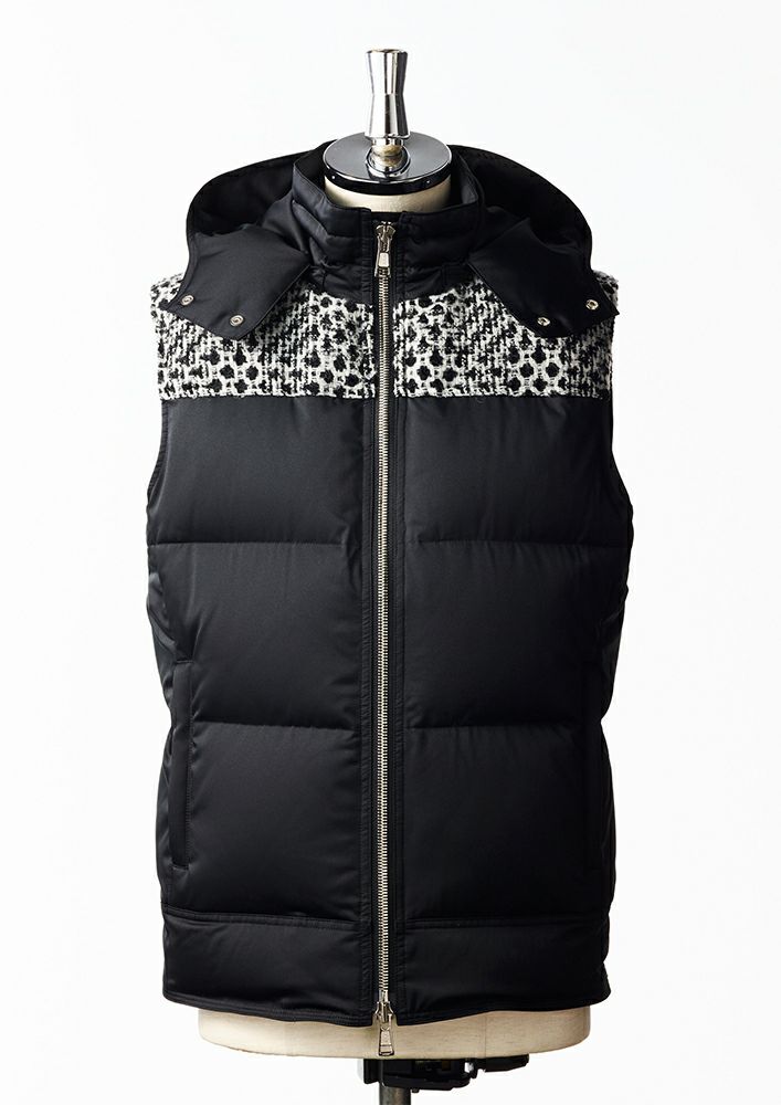 【AKM】STRETCH TAFFETA by LIMONTA / TWEED DOWN VEST -BLACK-