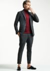 AKM定番のSWING EASY SET-UPの改良版です。パッチポケットが特徴的なシングルノッチドラペルジャケットは総裏仕立てで身返しはお台場仕様と、より本格スーツのディテールを採用しています。パンツは定番のEASYテーパードスラックスです。厳選した各表地はストレッチ性に富んでおり快適な着用感を保証します。釦は AKM 定番の本水牛六穴釦です。今期はパンツの裾をダブル仕上げにてご提案します。