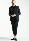 AKM定番のSWING EASY SET-UPの改良版です。パッチポケットが特徴的なシングルノッチドラペルジャケットは総裏仕立てで身返しはお台場仕様と、より本格スーツのディテールを採用しています。パンツは定番のEASYテーパードスラックスです。厳選した各表地はストレッチ性に富んでおり快適な着用感を保証します。釦は AKM 定番の本水牛六穴釦です。今期はパンツの裾をダブル仕上げにてご提案します。