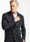 AKM秋冬定番のデュアルウォームSWING EASY SET-UP。今季は無地のみの展開で、フラップポケットが特徴的なダブルピークドラペルジャケットを新たにラインナップ。発熱効果のあるポンチ素材を採用し、一枚仕立てで軽量に仕上げながらもウォーム効果がある素材を採用することで、秋冬仕様へと昇華しています。ストレッチ性にも富んでいるので快適な着用感を保証します。釦は AKM 定番の本水牛六穴釦です。