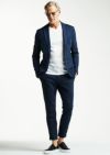 AKM定番のSWING EASY SET-UP。パッチポケットが特徴的なシングルノッチドラペルジャケットと定番のEASYテーパードスラックスです。過去にLEON誌タイアップにて発表したモデル同様、発熱効果のあるポンチ素材を採用し、一枚仕立てで軽量に仕上げながらもウォーム効果がある素材を採用することで、秋冬仕様へと昇華しています。ストレッチ性にも富んでいるので快適な着用感を保証します。釦は AKM 定番の本水牛六穴釦です。今期はパンツの裾をダブル仕上げにてご提案します。