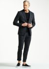 AKM定番のSWING EASY SET-UP。パッチポケットが特徴的なシングルノッチドラペルジャケットと定番のEASYテーパードスラックスです。過去にLEON誌タイアップにて発表したモデル同様、発熱効果のあるポンチ素材を採用し、一枚仕立てで軽量に仕上げながらもウォーム効果がある素材を採用することで、秋冬仕様へと昇華しています。ストレッチ性にも富んでいるので快適な着用感を保証します。釦は AKM 定番の本水牛六穴釦です。今期はパンツの裾をダブル仕上げにてご提案します。