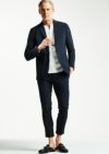 釦は AKM 定番の本水牛六穴釦です。今季はパンツの裾をダブル仕上げにてご提案します。