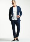 AKM定番のSWING EASY SET-UP。パッチポケットが特徴的なシングルノッチドラペルジャケットと定番のEASYテーパードスラックスです。過去にLEON誌タイアップにて発表したモデル同様、発熱効果のあるポンチ素材を採用し、一枚仕立てで軽量に仕上げながらもウォーム効果がある素材を採用することで、秋冬仕様へと昇華しています。ストレッチ性にも富んでいるので快適な着用感を保証します。釦は AKM 定番の本水牛六穴釦です。今期はパンツの裾をダブル仕上げにてご提案します。