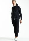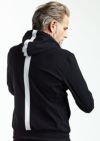 シームを利用したミニマムな腰ポケットと各所のリブ使いが特徴で、フード~後身に1直線のラインを配色で切替え、アクセントにしています。