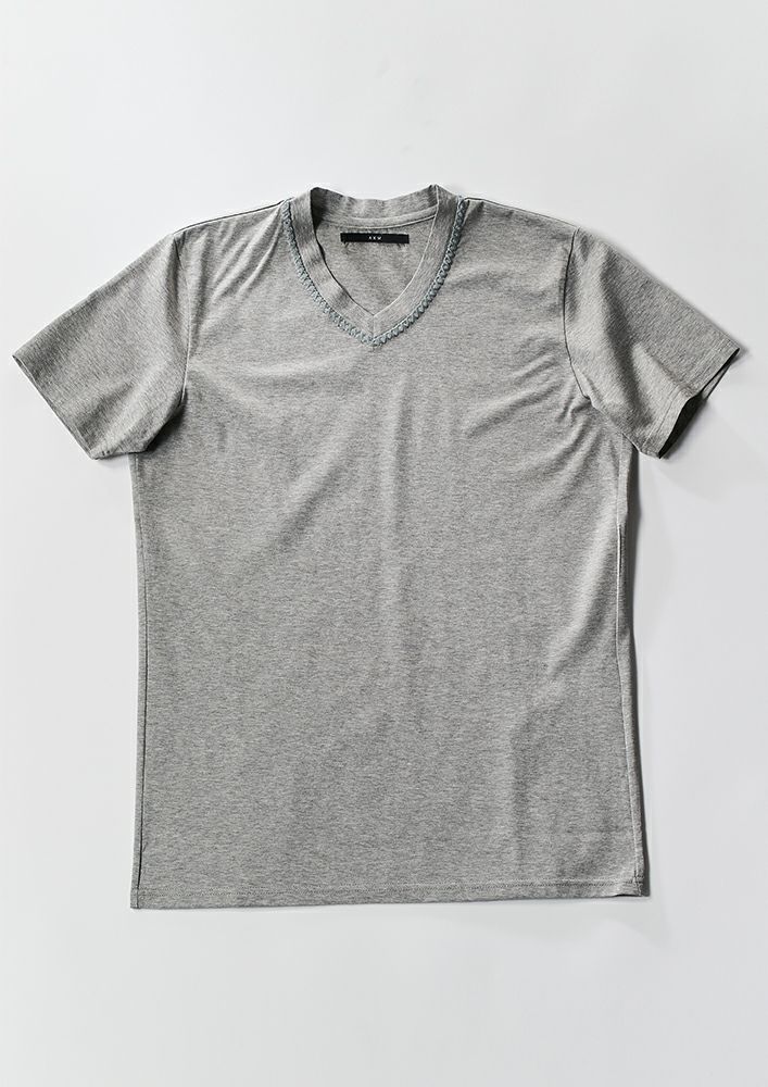 【 T244 / CTN266 / SILKETE COTTON S/S HAND STITCH V-NECK -TOP GRAY- 】