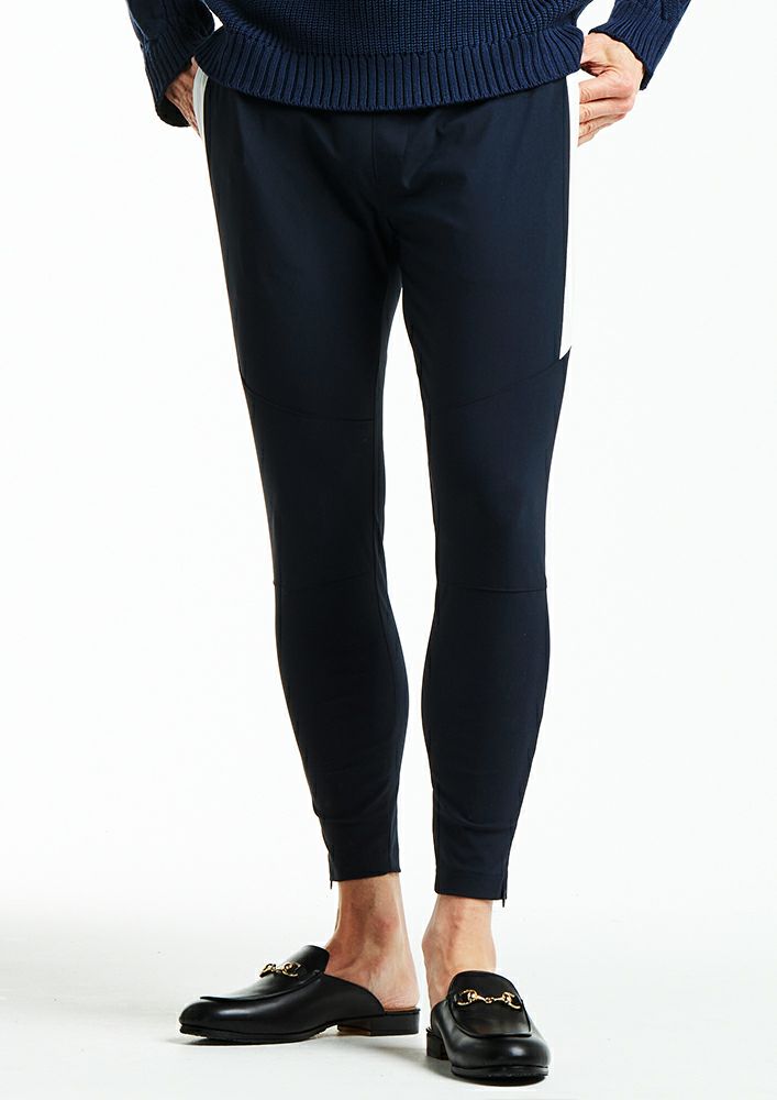 【AKM】MERYL HIGH TENSION SIDE LINE BIKER SKINNY -NAVY-