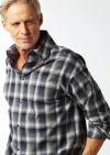 【 S145 / PER034 / SUMMER WOOL OMBRE CHECK DROP SHOULDER SHIRTS -BLACK/WHITE- 】