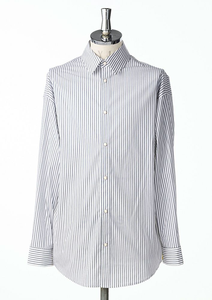 【 S145 / CTN268 / COTTON NYLON STRECH STRIPE DROP SHOULDER SHIRTS -WHITE/NAVY- 】