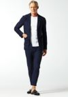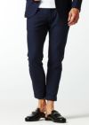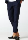 トレッチ性にも富んでいるので快適な着用感を保証します。釦は AKM 定番の本水牛六穴釦です。今期はパンツの裾をダブル仕上げにてご提案します。