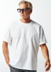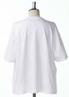AKM定番の半袖クルーネックTシャツをベースに、袖は五分丈、サイズ感をビッグシルエットにアレンジしています。衿はリブ(フライス)仕様です。