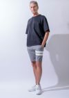 AKM定番の半袖クルーネックTシャツをベースに、袖は五分丈、サイズ感をビッグシルエットにアレンジしています。衿はリブ(フライス)仕様です。