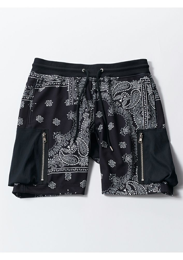 【 P357 / PET155 / DRY SUITING JERSEY BANDANA/STRETCH HYBRID CARGO SHORTS -BLACK/WHITE- 】