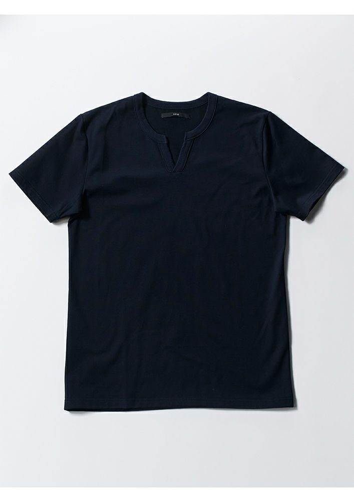 【 T250 / CTN269 / LONG STAPLE TENJIKU S/S KEY NECK -NAVY- 】