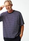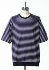 【 T265 / CTN273 / SUPIMA COTTON PONTE S/S LOOSE FIT BORDER T -NAVY/WHITE-】