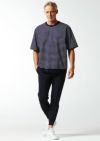 AKM定番の半袖クルーネックTシャツをベースに、袖は五分丈、サイズ感をビッグシルエットにアレンジしています。衿、裾はリブ(フライス)仕様です。