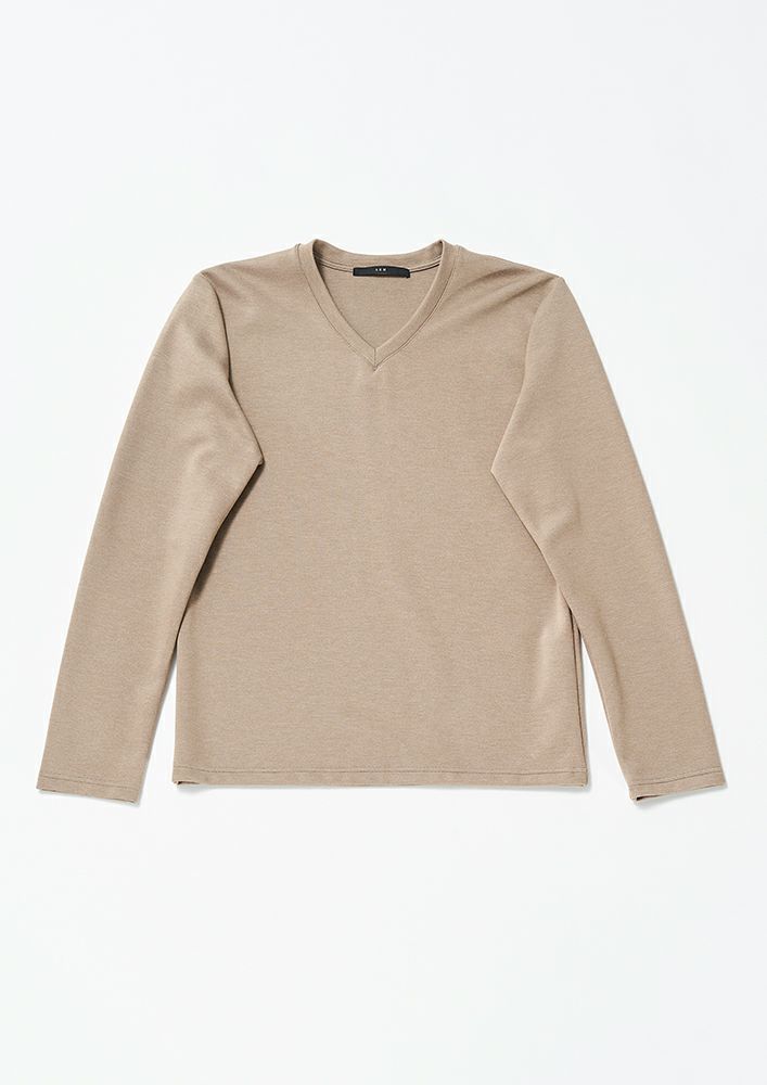 【 T273 / ALR031 / DUALWARM MOIST PONTI L/S V-NECK -GRAY BEIGE- 】