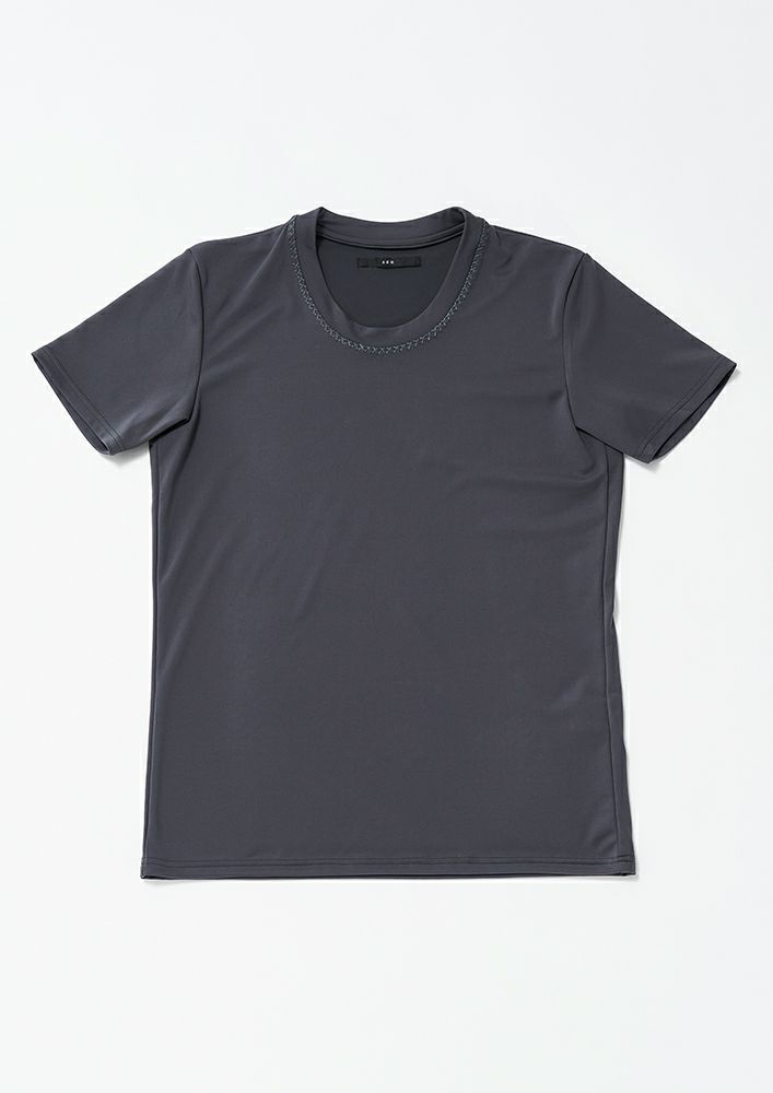 【 T276 / CTN279 / POLYESTER SMOOTH S/S HAND STITCH U-NECK -GRAY- 】