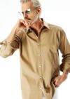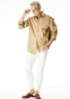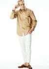 【 S150 / CNR010 / COTTON STRETCH SATEEN L/S BIG PLAIN -BEIGE- 】