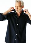 【 S150 / CNR010 / COTTON STRETCH SATEEN L/S BIG PLAIN -NAVY- 】