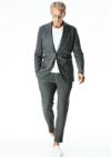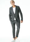 釦は AKM 定番の本水牛六穴釦です。パンツの裾はシングル仕上げにてご提案します。