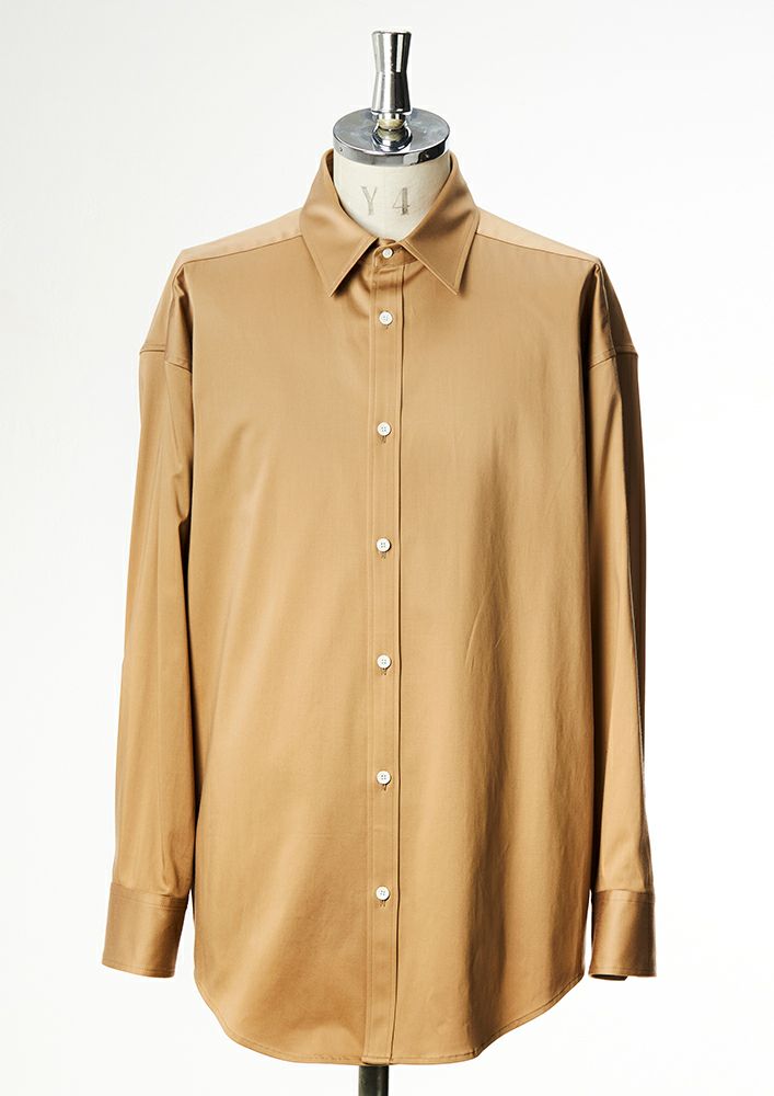 【 S150 / CNR010 / COTTON STRETCH SATEEN L/S BIG PLAIN -BEIGE- 】