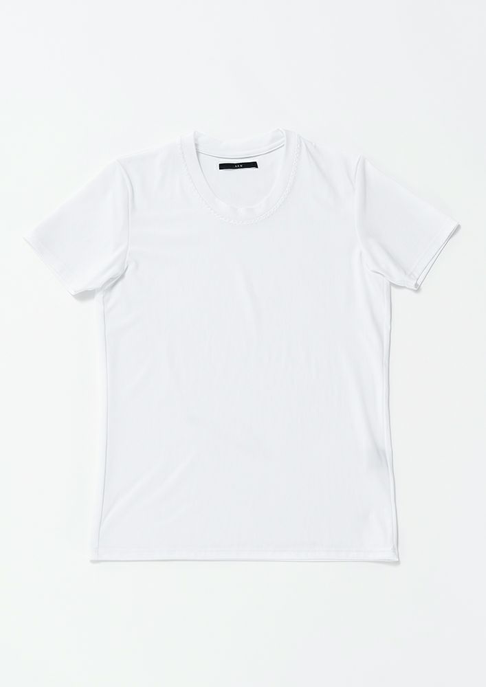 【 T276 / CTN279 / POLYESTER SMOOTH S/S HAND STITCH U-NECK -WHITE- 】