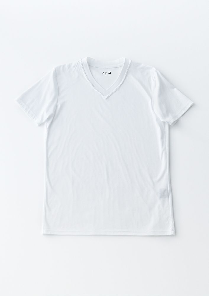 【T278 / CNT005 / S/S HAND STITCH V-NECK -WHITE-】