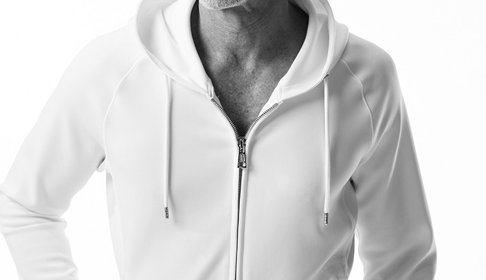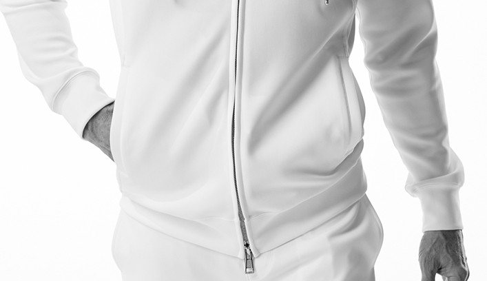 袖口、裾にリブを使用せず、表地共地にてミニマルに仕上げています。