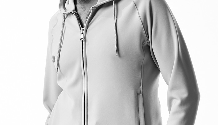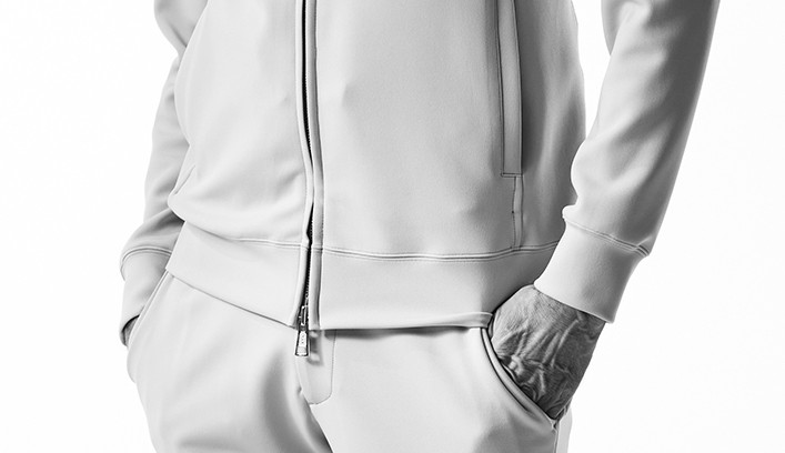 袖口、裾にリブを使用せず、表地共地にてミニマルに仕上げています。