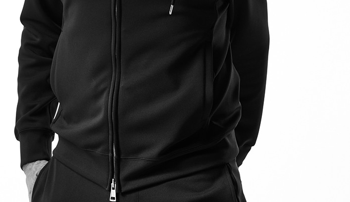 袖口、裾にリブを使用せず、表地共地にてミニマルに仕上げています。