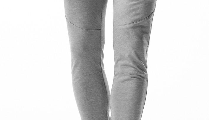 この上ない美シルエットが特徴的な定番 EASY RIB PTにバイカースキニーパンツの膝上の切替デザインを追加した今作。