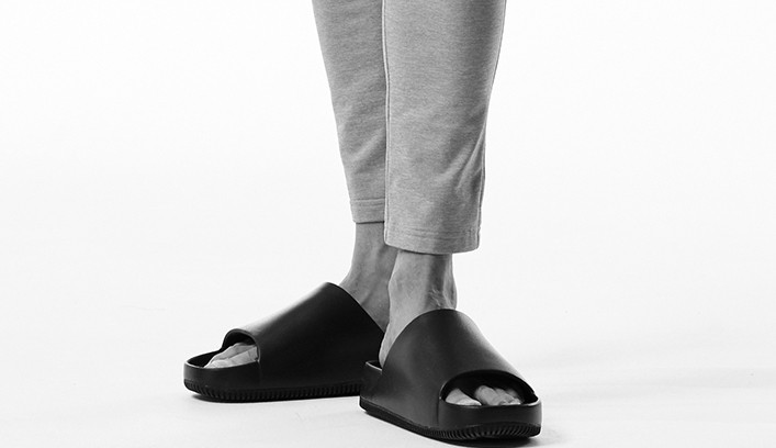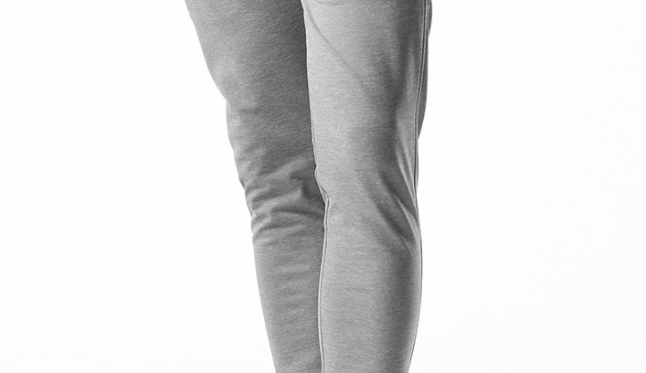 膝から裾にかけてテーパードさせ、裾はリブ仕様ではなく、シングル仕上げを採用しています。