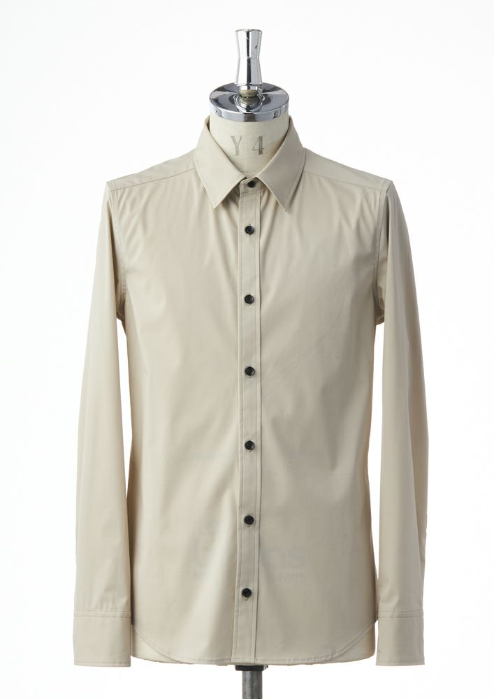 AKM定番のプレーンシャツ。 ドレスシャツを タイトフィッティングに直線的なディテールで構築したベーシックシャツ。