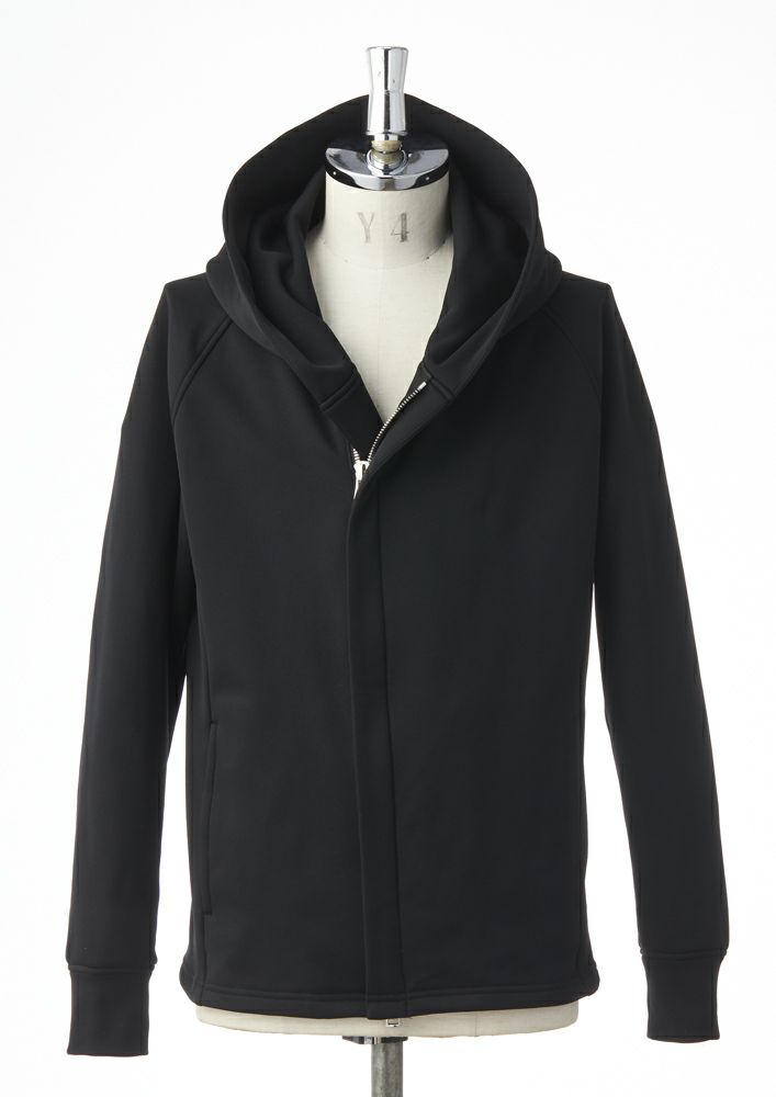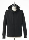 WRAP フード型のショート丈ZIPパーカーです。肩周りは身体に馴染むラグラン袖を採用し、袖口にリブを使用せず、表地共地にすることでミニマルに仕上げています。