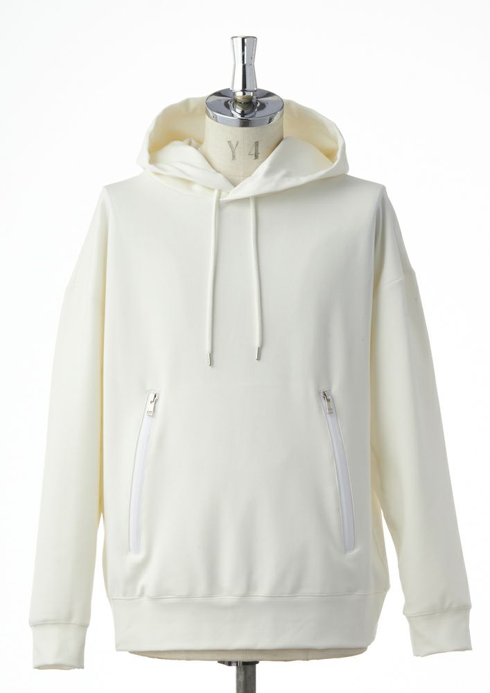 【B515 / RAN010 / SKB PONTE BACK BRUSHED RELAX PULLOVER ZIP POCKET PARKA -WHITE-】