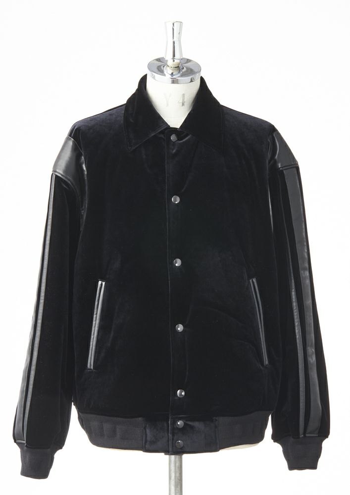 【B505 / TAP001 / VELOUR / ECO LEATHER VARSITY JKT -BLACK-】