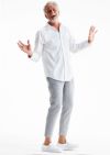 ストレッチ性にも富んでいるので快適な着用感を保証します。釦は AKM 定番の本水牛六穴釦です。