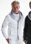 【B516 / PET168 / TEXBRID HIGH-GAGE JERSEY COMBI LINE WRAP HOODED -WHITE / GRAY-】