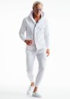 • TEXBRIDRという高ストレッチの機能糸を使用し、起毛加工のための生機(きばた)設計を試み、3回起毛をかき、軽さと膨らみを実現しました。