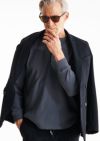 袖口、衿は表地共地仕様で、フロントはAKMロゴ入り本水牛釦を採用しています。