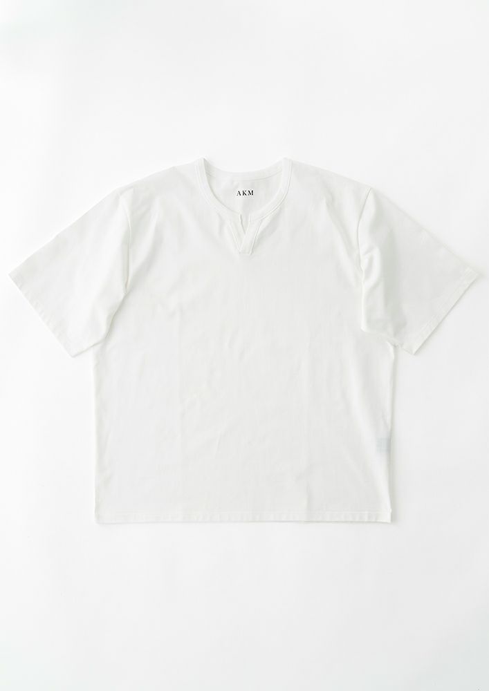 上質なコットン天竺生地を体感頂くべく、シンプルに仕上げています。今季はブランドネームを廃し、衿下外側にAKMロゴをプリントしています。