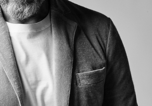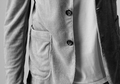 腰のパッチポケットが特徴的なシンプルな定番2つ釦ジャケットです。16SS時からラペルの形状など微修正を行っており、進化し続けているモデルです。今季はラペル衿を若干細くしています。釦はAKMオリジナルの六穴水牛釦を採用しています。