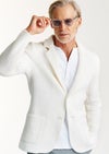 カジュアルなニットでは終わらせず、テーラードジャケットとして成立させるだけの品格を備えているのがこの素材の強みです。