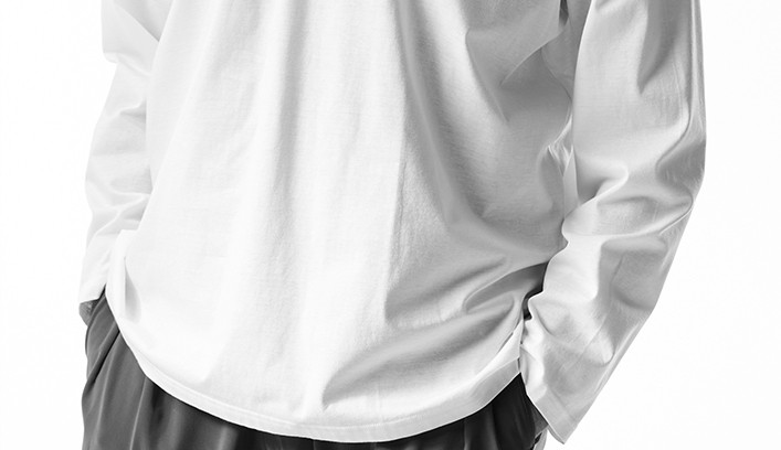 上質なコットン天竺生地を体感頂くべく、シンプルに仕上げています。